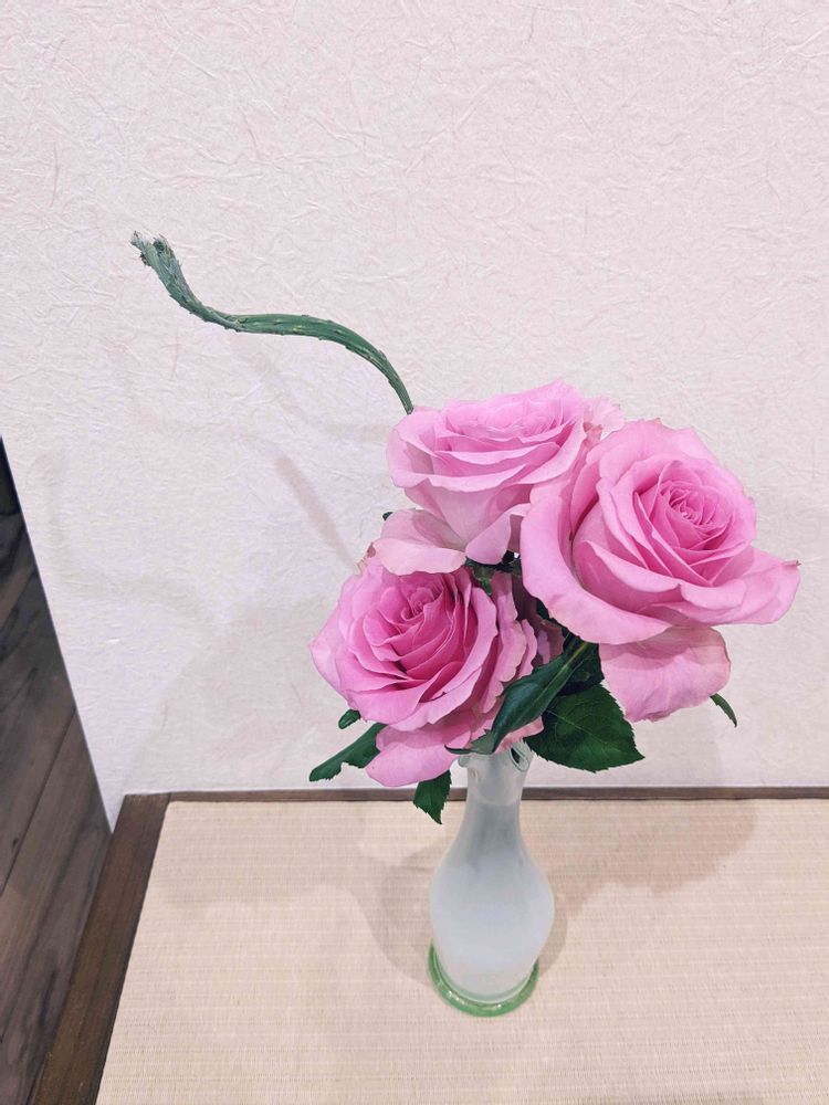 アレンジメントに入っていたこの色のバラだけなんか妙に浮いていたので別で活けることに…