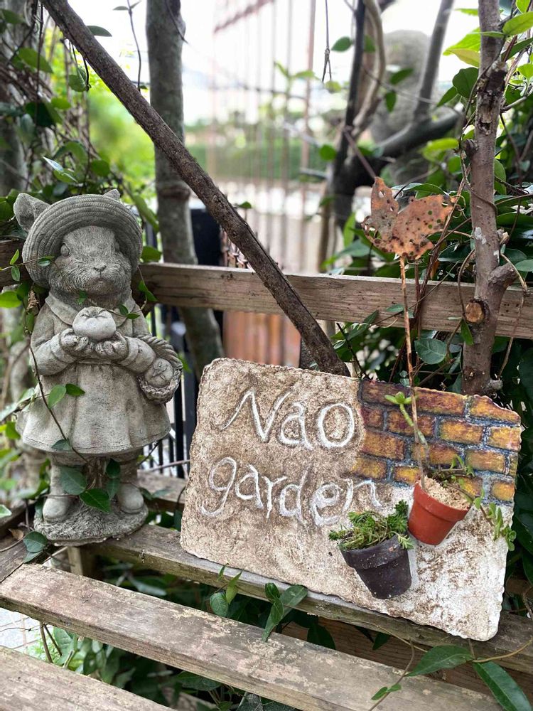 ハツユキカズラで覆われていたコーナーを剪定しました☺️花友さんの影響でガーデンプレートを作って飾りました💦