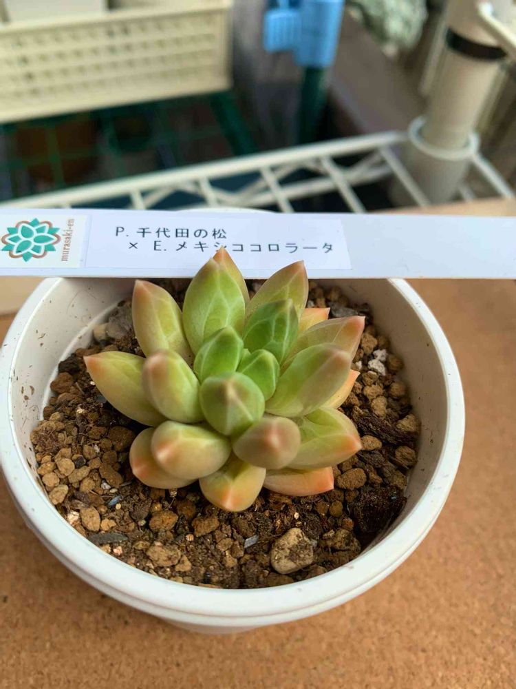 おはようございます🌤最初見た時思わず、むらさき園のお兄さんに「これもエケベリア⁉️ヤバいですね😵💫」と、よく分からない感想を伝えてしまう位には、色づきも、ウォーターマーク🌊(最近はファルセットラインと言うらしい)もスゴイ🤔パキベリアって言うらしい交配種みたい🤝