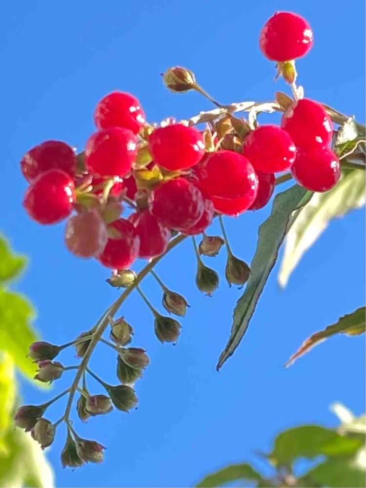 写真では判りにくいけど、ピンク色の実です、お花がなかなか撮れなくて💦、実だけのお写真になりました😅。
