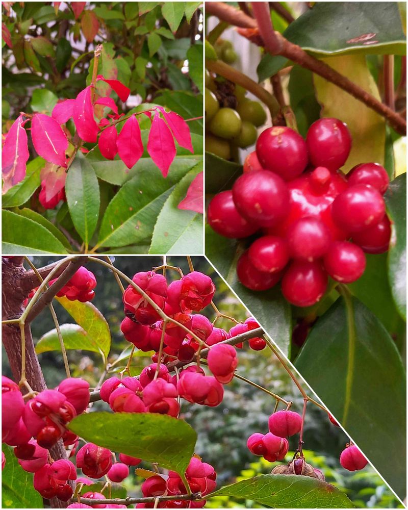 ビナンカズラ(美男葛)も真っ赤に色づき、マユミ(真弓)はパカッと割れて美味しそうなさくらんぼ🍒みたいに~🥰