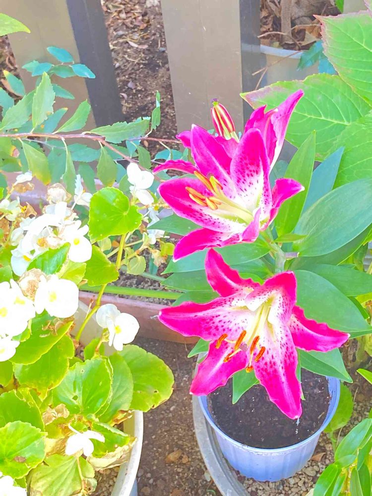 明らか空き家の前にスターゲイザー百合が素敵に咲いてる
