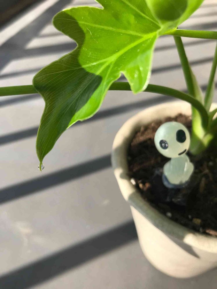 なぜ、水滴が付いてるのだろう⁇とずっと思ってて、調べてみたら、蒸散という現象のよう…部屋の中だったから、光合成しきれなくて、水分が処理しきれなく、葉っぱから出た感じ…何度か見てて不思議だった…