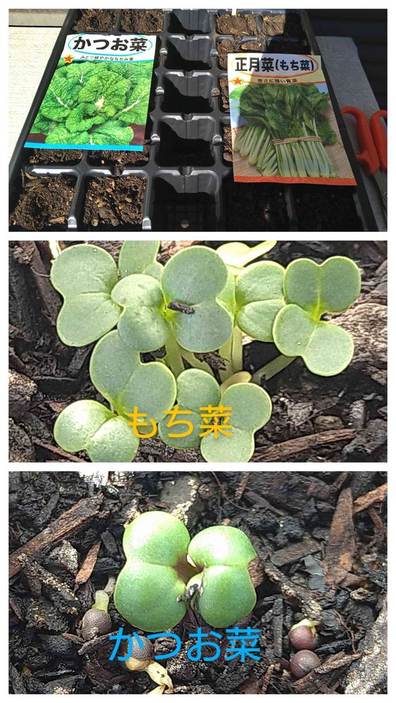 福岡🧳行った時に、もち菜の種を見つけ、福岡県の野菜かつお菜の種と一緒に買って10/30種まきしました。