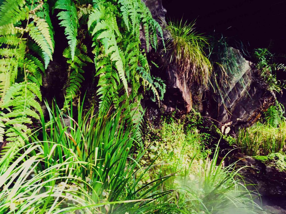 お出かけ先の水族館にて。渓流をイメージしたエリアでシダ植物を楽しむ。