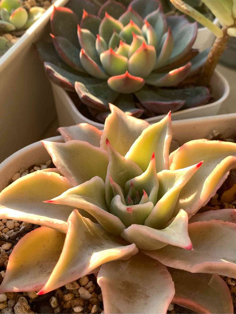 室内と強烈な西日の狭いベランダで多肉を育てています。遮光なしでも大丈夫な子を探しながら置き場確保の為常に奮闘中。 植物全般が好きですが、日差しが強すぎ多肉しか生き残りませんでした😅 動物や虫も好きです。 猫がいるので薬剤ほぼは使ってません。 そしてハダニを蔓延させてしまい夏場は多肉が死にまくる様になってしまいました😱