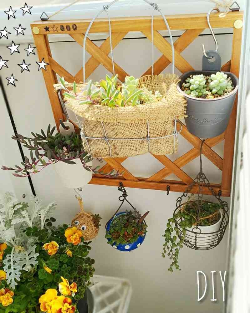 セリアの木製トレリスでハンギングスペースつくりました。