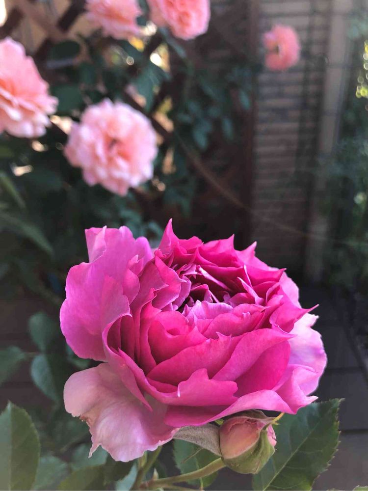 ピンク一色ですが、とても個性のある薔薇です❣️朝日に照らされ、とても綺麗でした😆