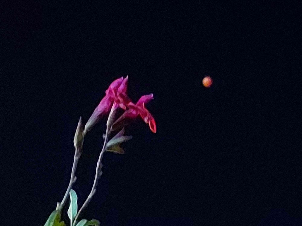 さん、スマホだと難しいですね☺️すごい体勢で、何枚も撮ったうちのベストショットです😆お花は光が当たるけど月の赤さが残るように頑張りました🎵