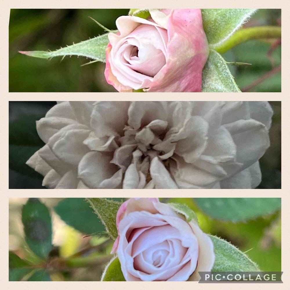 ミニバラ レトランジェ🤍🤍今日の時点で色づいている蕾は二つです✌️