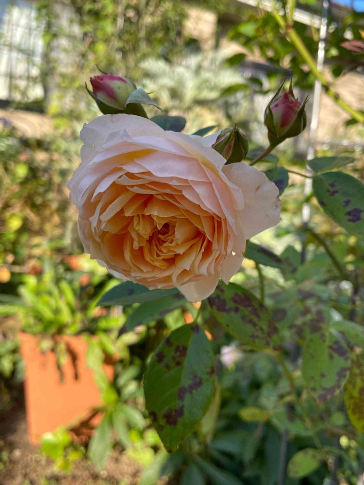 今年は黒星病にかかり、かなりショックです😲9月の剪定時には病気はなく、いつもより緑の葉がたくさんついていたのに💧