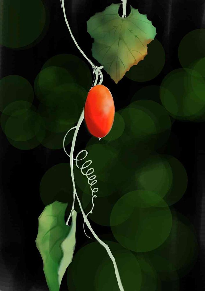 カラスウリは赤い実もとても可愛らしいので、イラスト描いてみました〜🤗