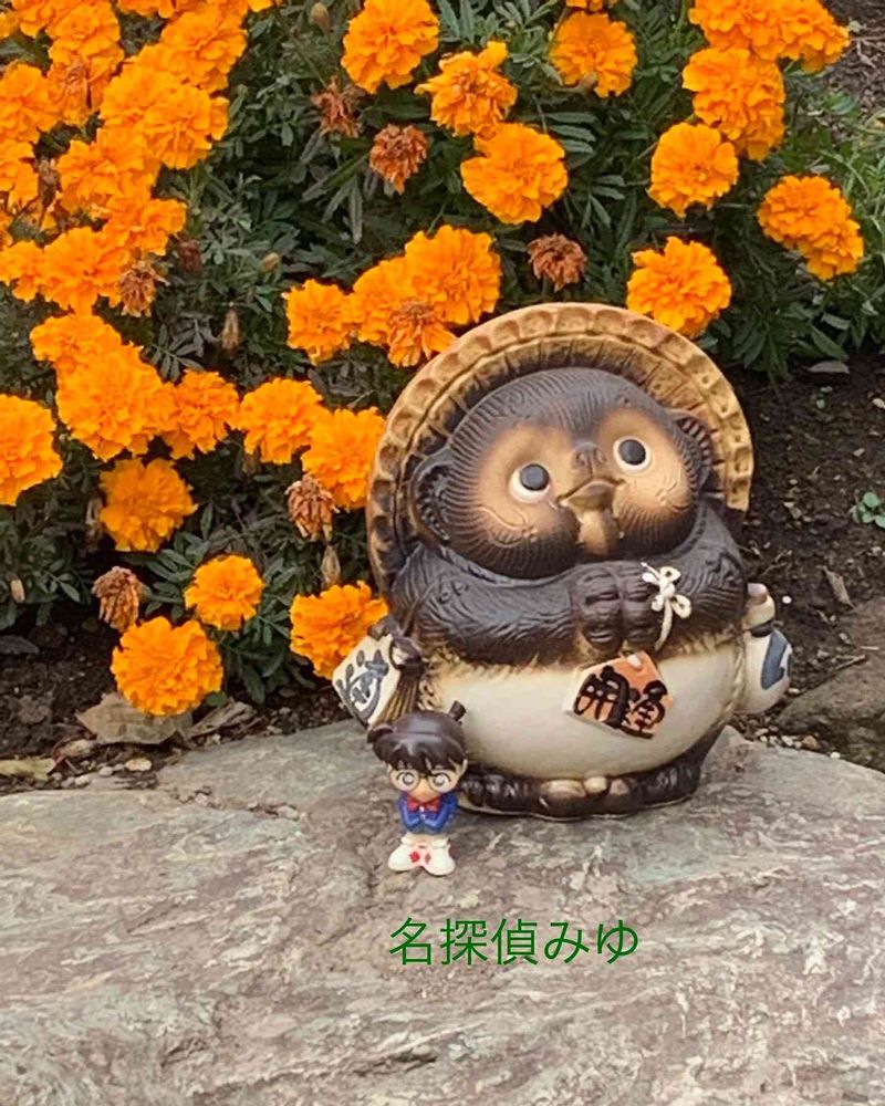 今日はタヌキ祭りの日♡実家のお庭のマリーゴールドと一緒にポンポコリン♡