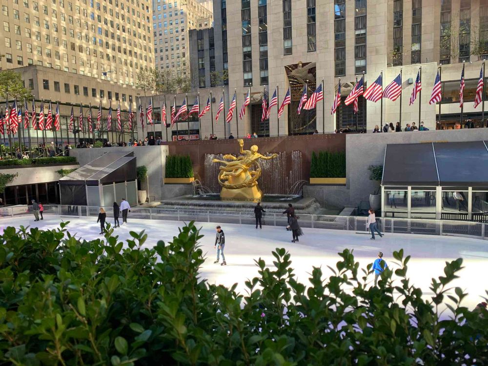 ロックフェラーセンターのアイススケート場 植え込みから撮影
