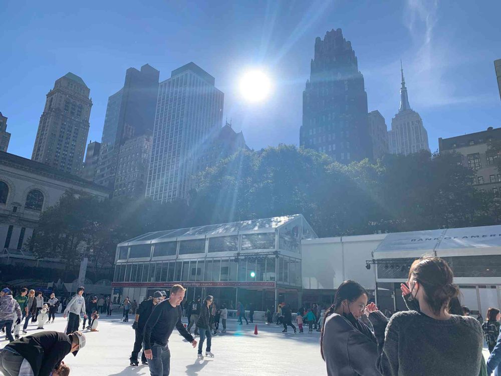 ブライアントパークもスケート場が設置されています 冬晴れ