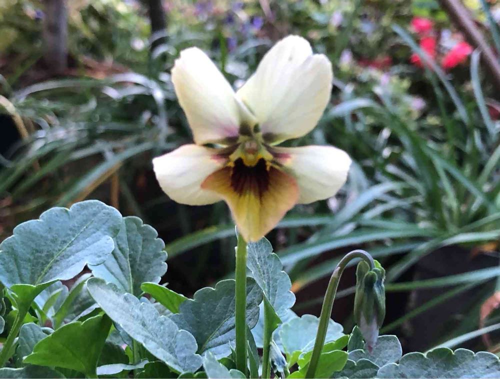 去年お迎えしたべっぴんさんビオラから採れたタネを蒔きました。親株と同じく神秘的な色が咲きました😍💚🤎。
