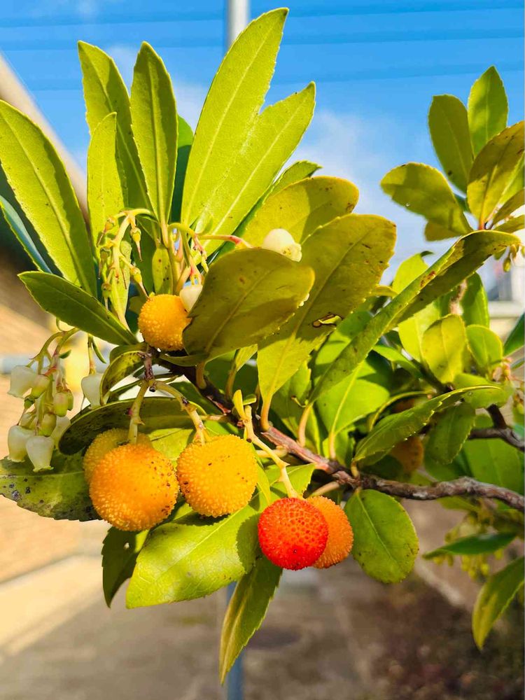 イチゴノキの実はイチゴよりは酸っぱいかも〜🤭