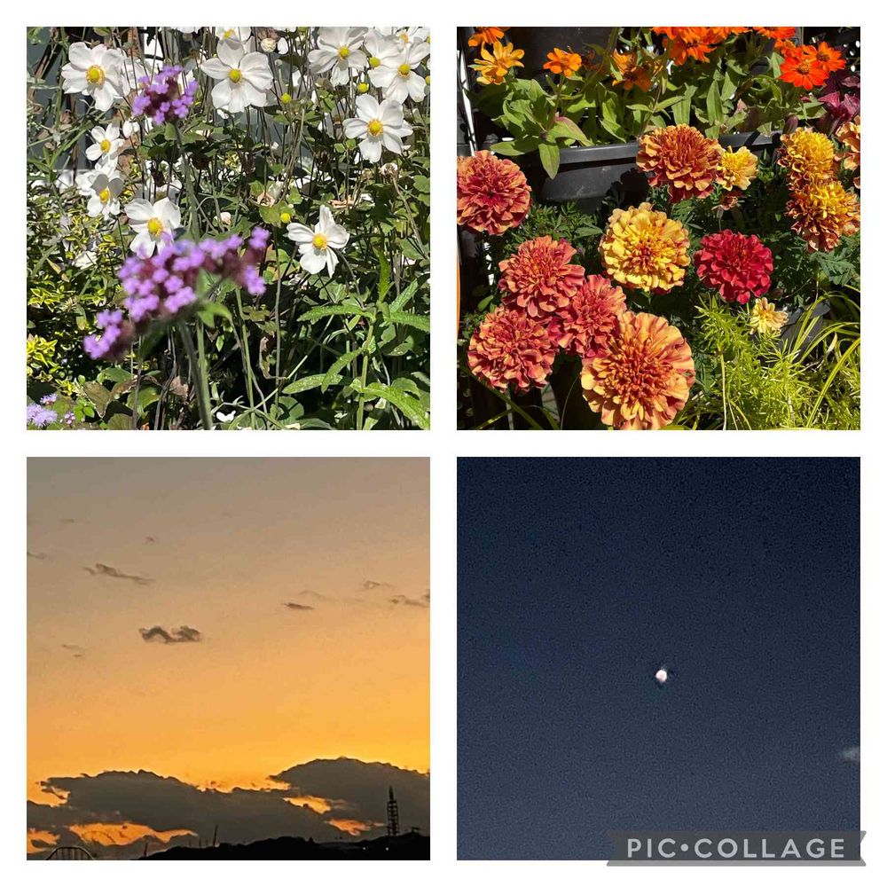 お花は駅前の大好きな白い秋明菊やマリーゴールド?とキバナコスモス?