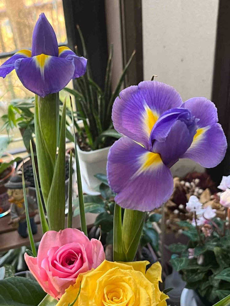 窓辺,あやめ,バラ、薔薇、ばらの投稿画像