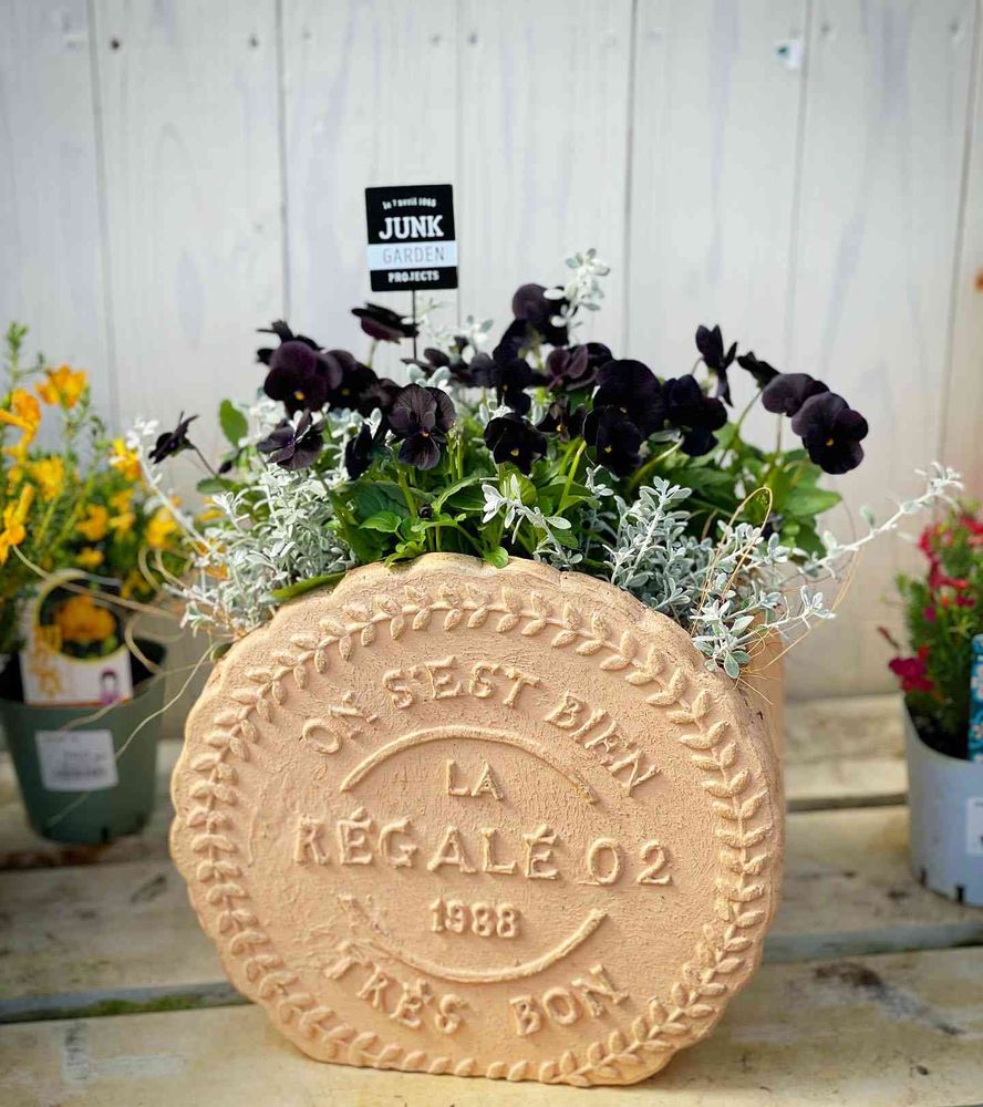 #ビオラ ブラック、可愛い鉢に寄せ植えがとっても似合うビオラ!