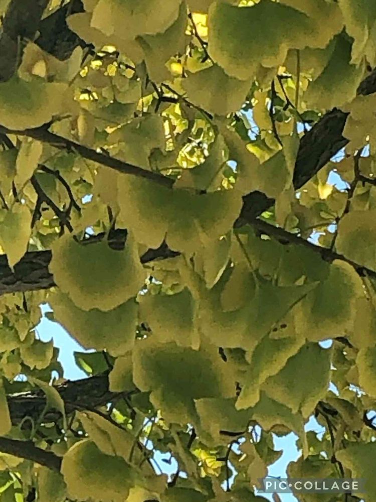 銀杏並木を歩いていたらグリーンからイエローになりかけでしょうか、、