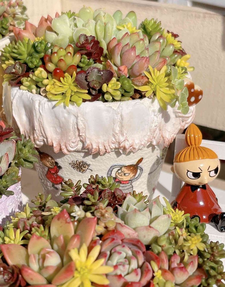 わぁ〜可愛いムーミン鉢に可愛らしい寄せ植え💖