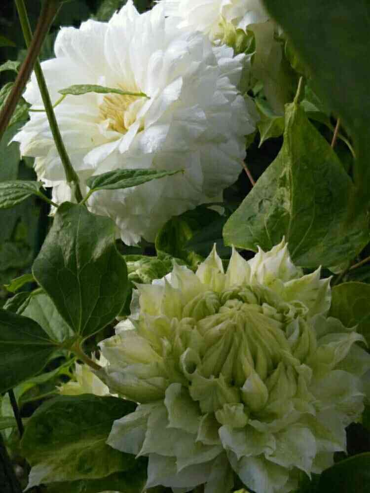 白と緑のクレマチス💕 八重はやっぱり大陸のムードがあるね(*˘︶˘*).。.:*♡ 美しい形✨✨✨