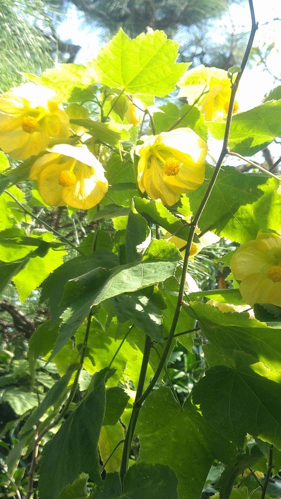 庭の片隅で、黄色のアブチロンが、静かにいっぱい咲いています。