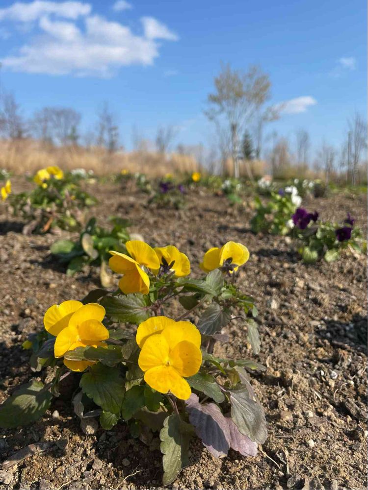 もうすぐ雪の季節ですが秋植えパンジービオラがポツン!ポツンと咲いてました〜❤︎