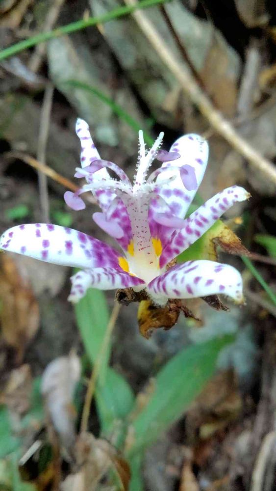 花弁の付け根に黄色の斑が有るのが目印