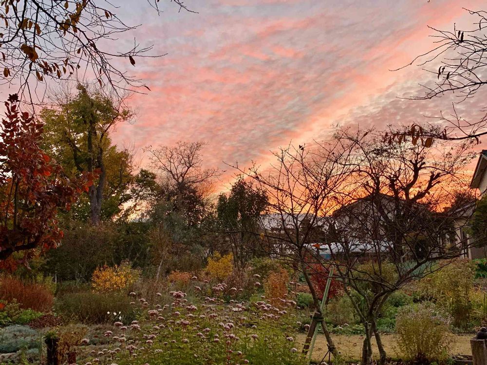 秋は朝焼けもキレイなのね〜😊