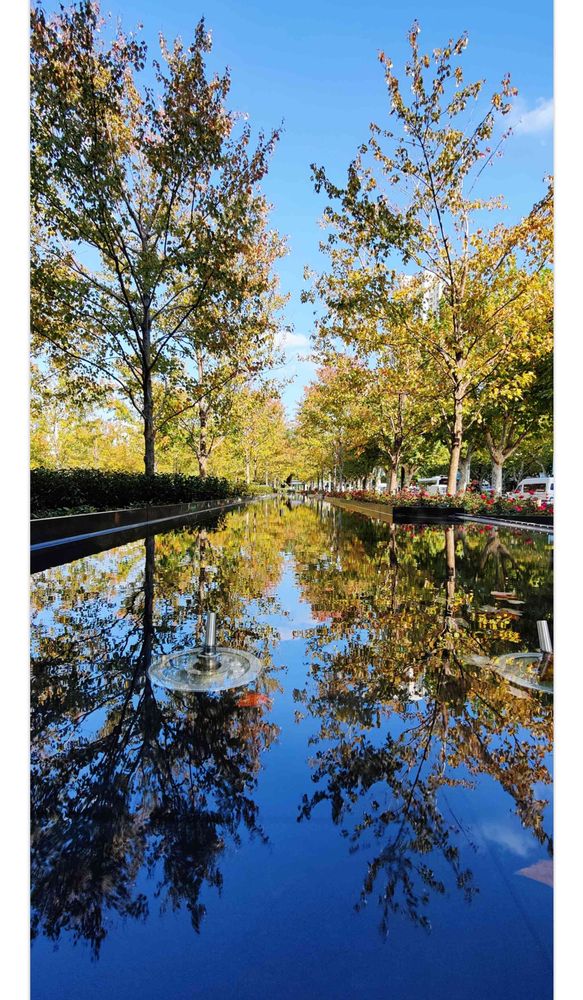 公園を出る時に通りかがったんですけど、水面に映った紅葉と青空があまりにもキレイだったので、(時間が無くて急いでいたけど)パチリ📷✨しました🥰