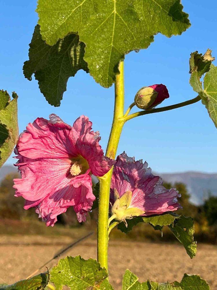えっ 立葵(タチアオイ)の花が、遅咲きですねー