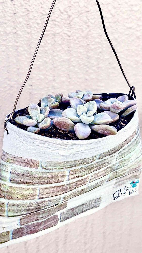 リメ缶のレンガ🧱は、デコパージュしたんだよ~。