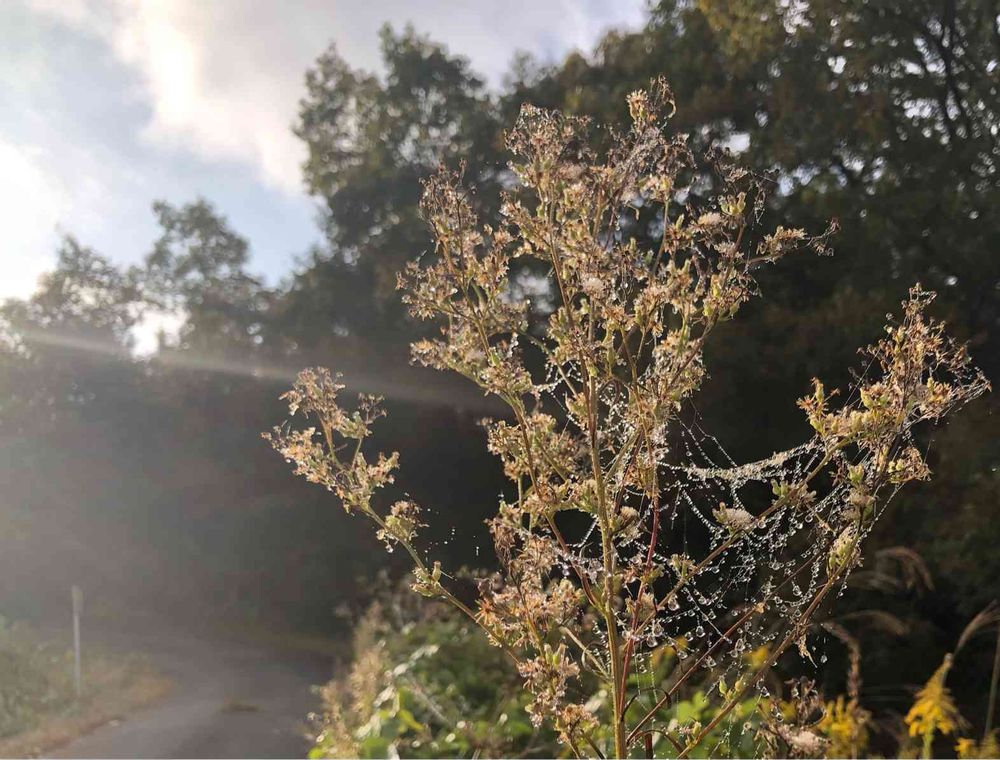 蜘蛛の巣🕸に朝露がいっぱいついて