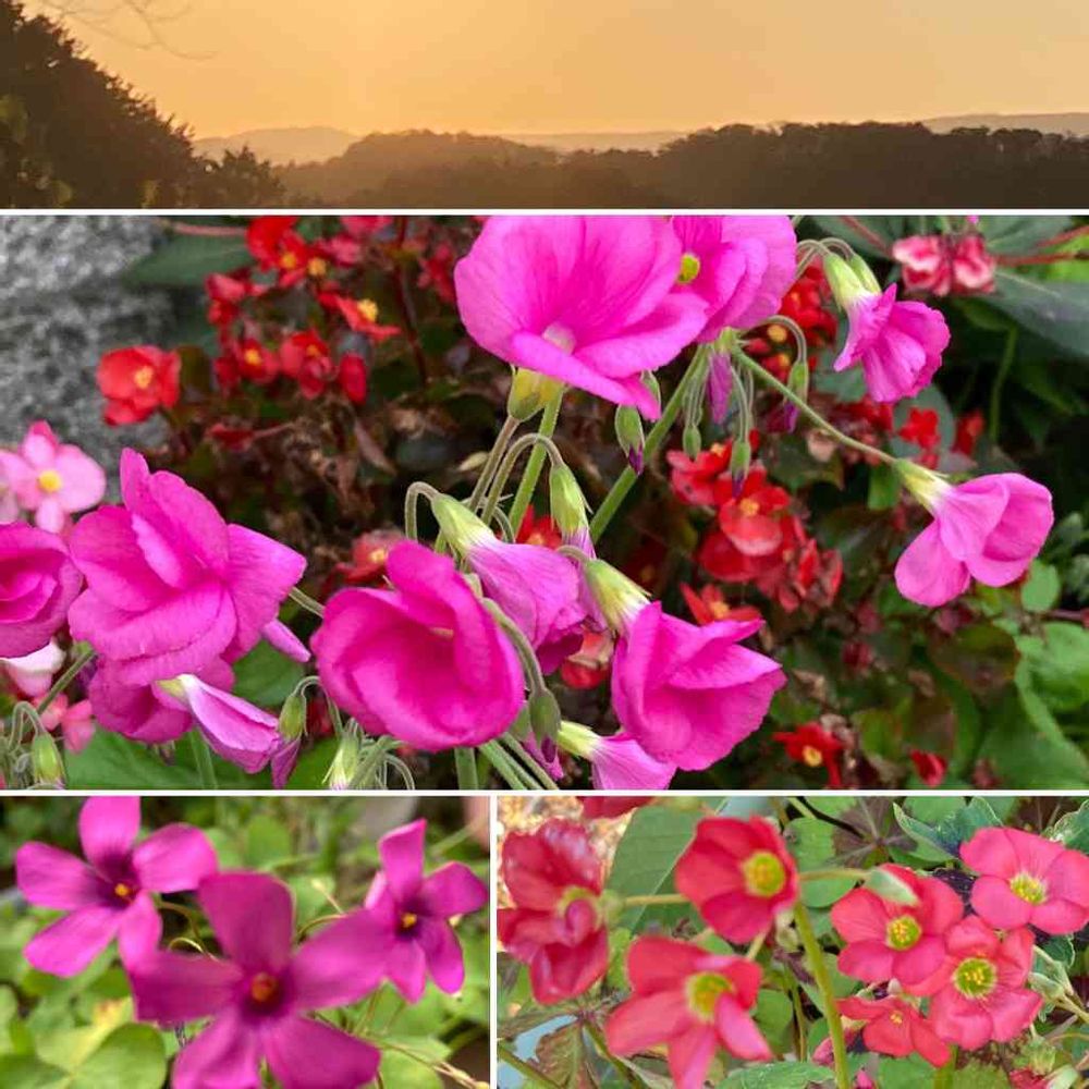 綺麗な夕焼け🌇に、可愛いお花さんたちのコラージュは、とっても素敵な色合い、雰囲気ですね💕