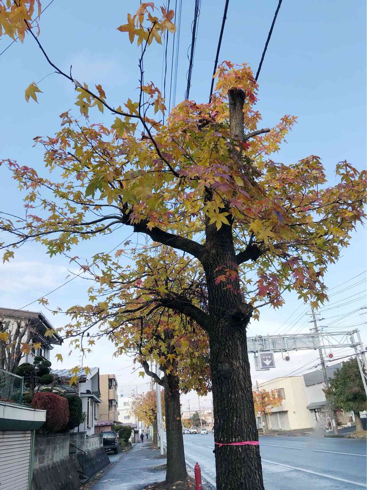 街路樹のカエデは黄葉していました。