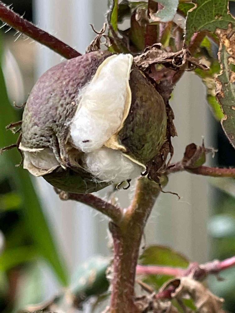 9月初めに花が数輪咲きましたが、実を着けたのは一つだけです。弾けてきてフワフワのワタが見えて来ました❣️