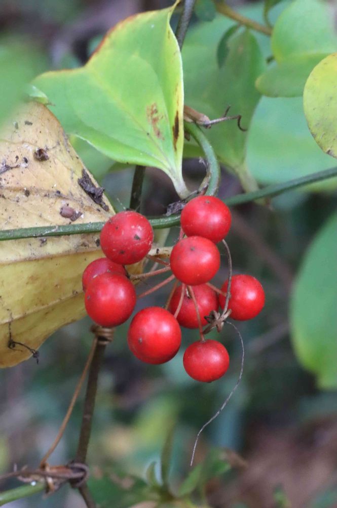 ウォーキングを兼ねて出かけた公園で、サルトリイバラの赤い実を見ました。赤い実 ①
