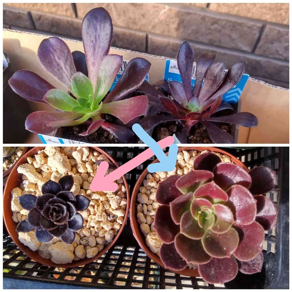 ダイソー多肉💕上が購入時pic 2022年1月10日で、下が10ヶ月後です。