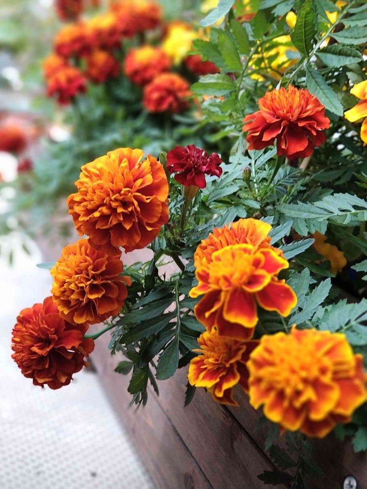綺麗な赤いマリーゴールドの種を下さり、ついにプランターが赤い色で染まりました。リボンの騎士さんのお陰です。本当にありがとうございました。まだ冬まで楽しませてもらいます💕