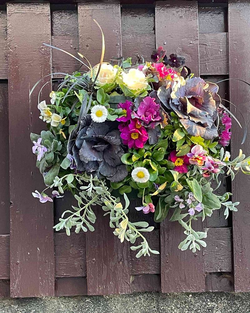 葉牡丹のハンギングバスケット、