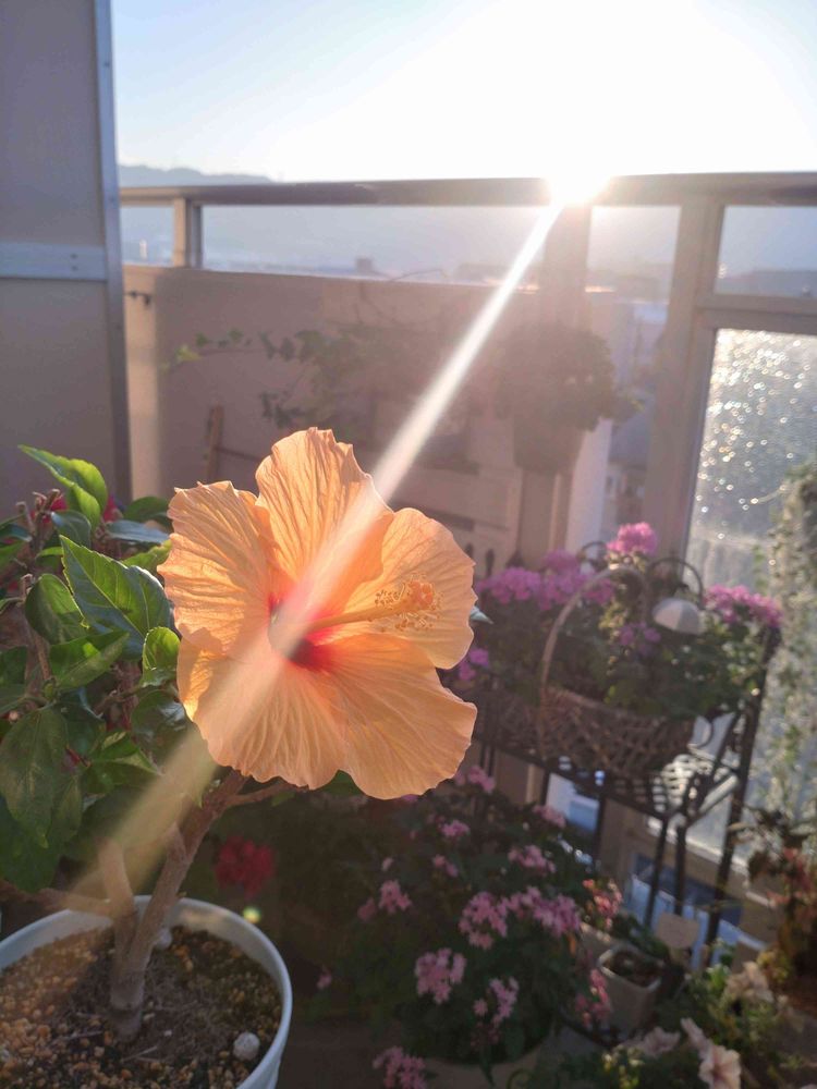 朝日を浴びたハイビスカスさん🌺美しい❤️❤️