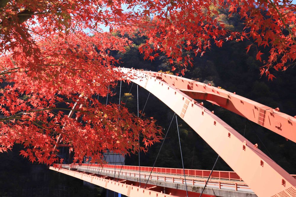 🍁紅葉に映える赤いアーチ橋がカッコいいコラボです👍〜🍁❤️