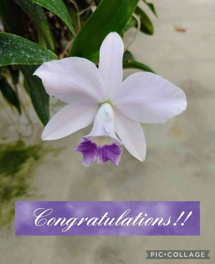 真っ白いカトレアの花、紫色模様のリップが可愛いです♡💜🌿