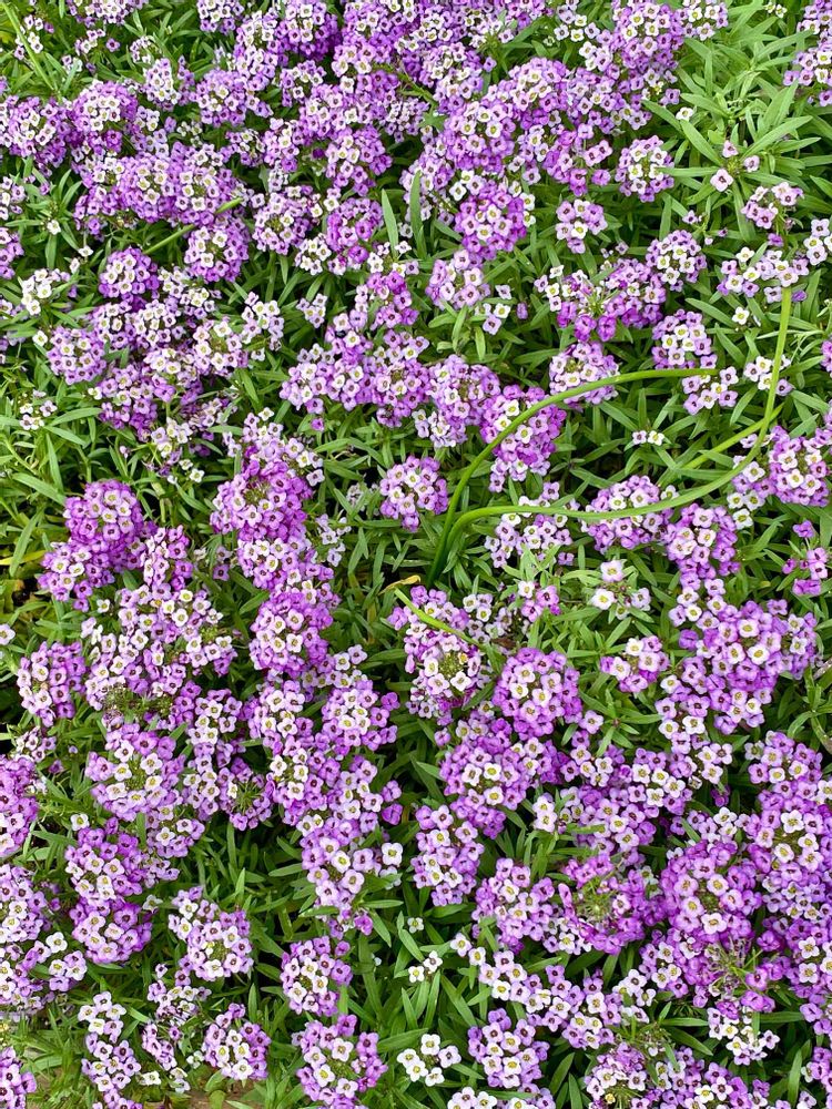 10月に冬〜春花壇の準備に行くと、一株のアリッサムが直径60センチくらいに広がっていたんです💜💜💜
