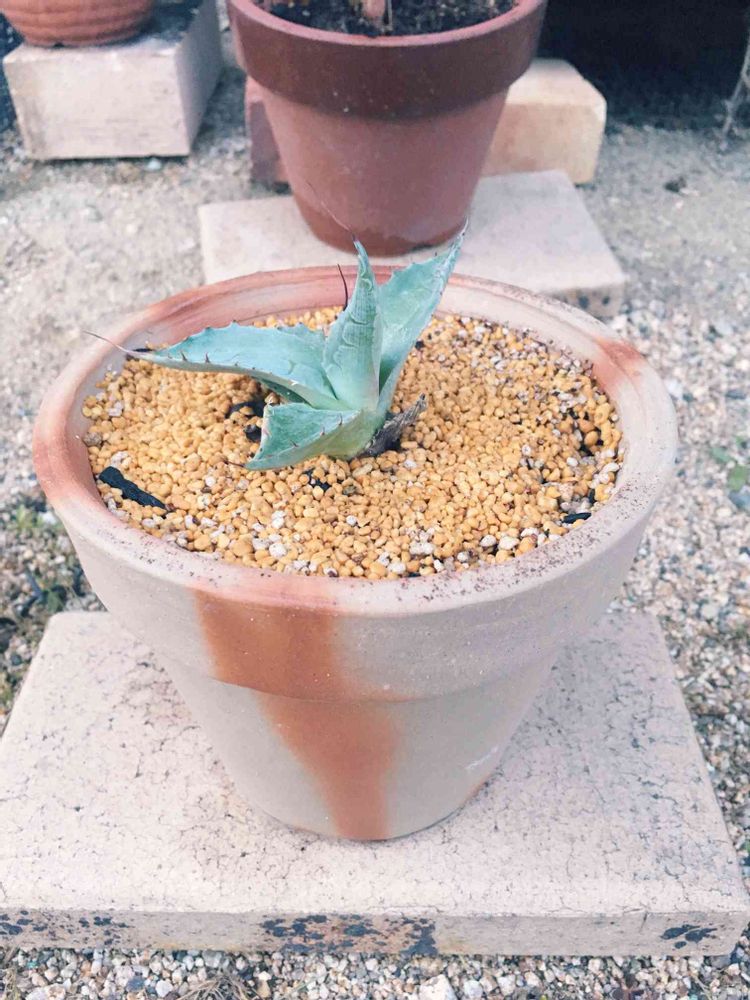 パラサナを息子が学校で焼いた植木鉢に植え替えました。