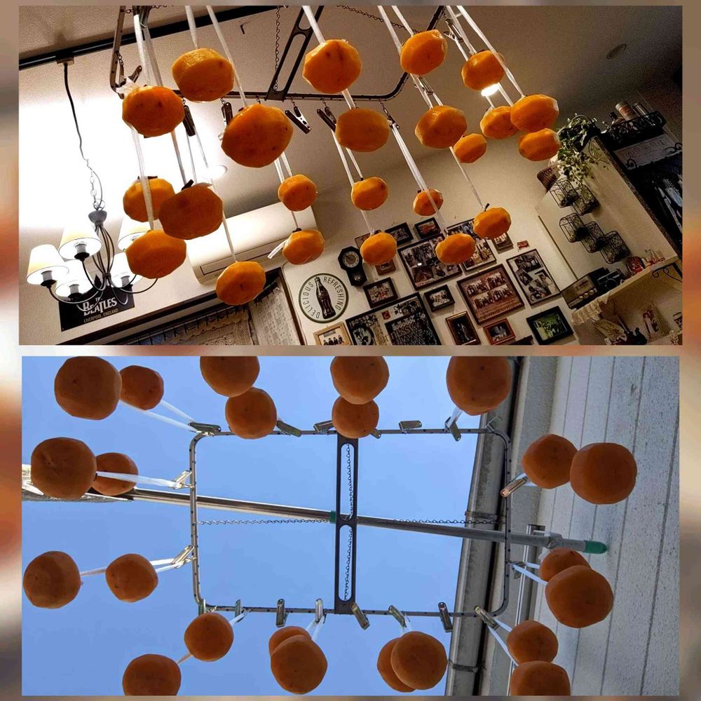 渋い柿3袋買って今日干しました😅💦