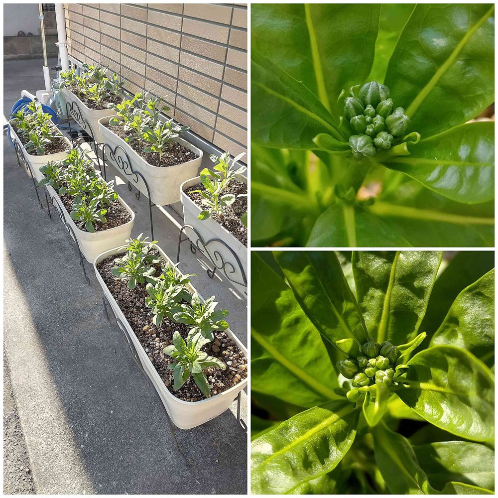 一昨日11月9日の写真ですが、ストック・キスミーチェリーに蕾を発見しました😆 一昨日で種まきから84日目。よく見たらほとんどの株で花芽が見えてます。ここから咲くまでが結構長いですが、これならなんとか年内にピンク色は拝めそうですね、やったー!😁👍 あ、このくらいでよく先端をアブラムシやコナジラミにヤラれるから、蕾がゆるむ前に予防に薬剤をスプレーしておこうかな😤💪