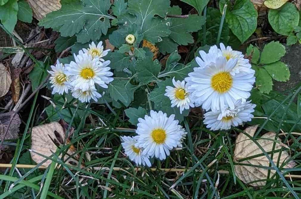 白い小菊が可愛く清楚に咲いて